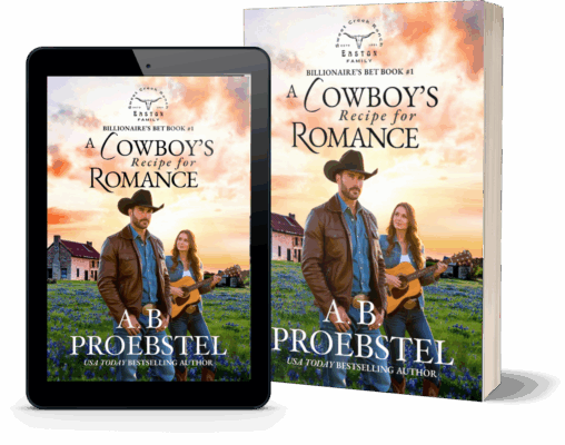 A Cowboy's Recipe for Romance is the charming first book in the Billionaire’s Bet series. If you like endearing heroes, scheming villains, and Lone Star love stories, then you’ll adore A.B. Proebstel’s sweet ride into the sunset.
